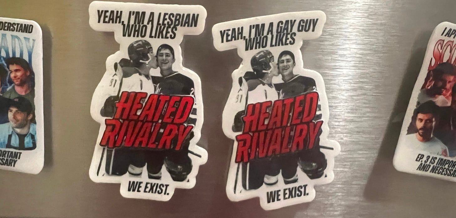 This was going to be a thing about Heated Rivalry, SNL and why people can’t seem to be normal about the show. That’s not even a top I particularly care about. It seems pretty obvious that love+hot actors=success and infatuation. I’m making crafts making fun of it. Your mom knows about it. Also so many other people have written about it. I really like the below piece by Caroline Siede over at Girl Culture. If you still need your Heated Rivalry questions answered, read this: