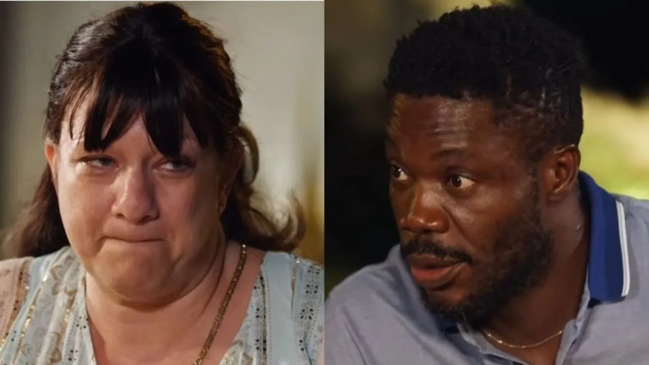 Lisa is a lesbian. This is not me projecting or making assumptions. When we meet her she tells us she’s only been dating women for 20 years. She was married to a woman for a decade. She has a daughter from her first marriage, but she’s only been with women since that ended. But when Daniel showed up in her DMs and called her his white queen, she decided it was time to get dickly. Lisa didn’t tell Daniel about her previous marriages or her relationships with women before she hopped on a plane to Nigeria. She didn’t tell him about any of this when he got on one knee at the airport and she said yes to his marriage proposal.